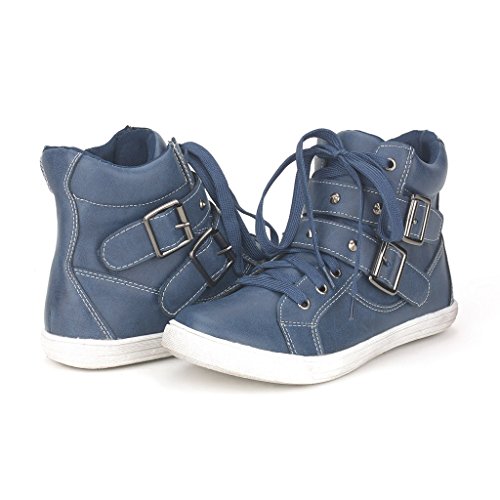 mode : Dream Pairs NY-33 Women's Fashion Studded Double Velcro Straps Buckles Cuff Zipper Closure High Top Casual Sneakers Shoes New Navy Size 11